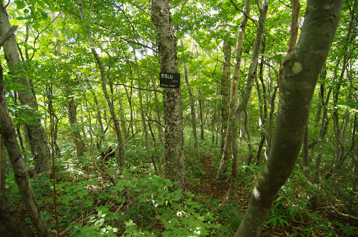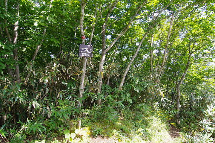 まったく展望はなく、ひたすら樹林帯の中を笹を漕ぎながら進みます。