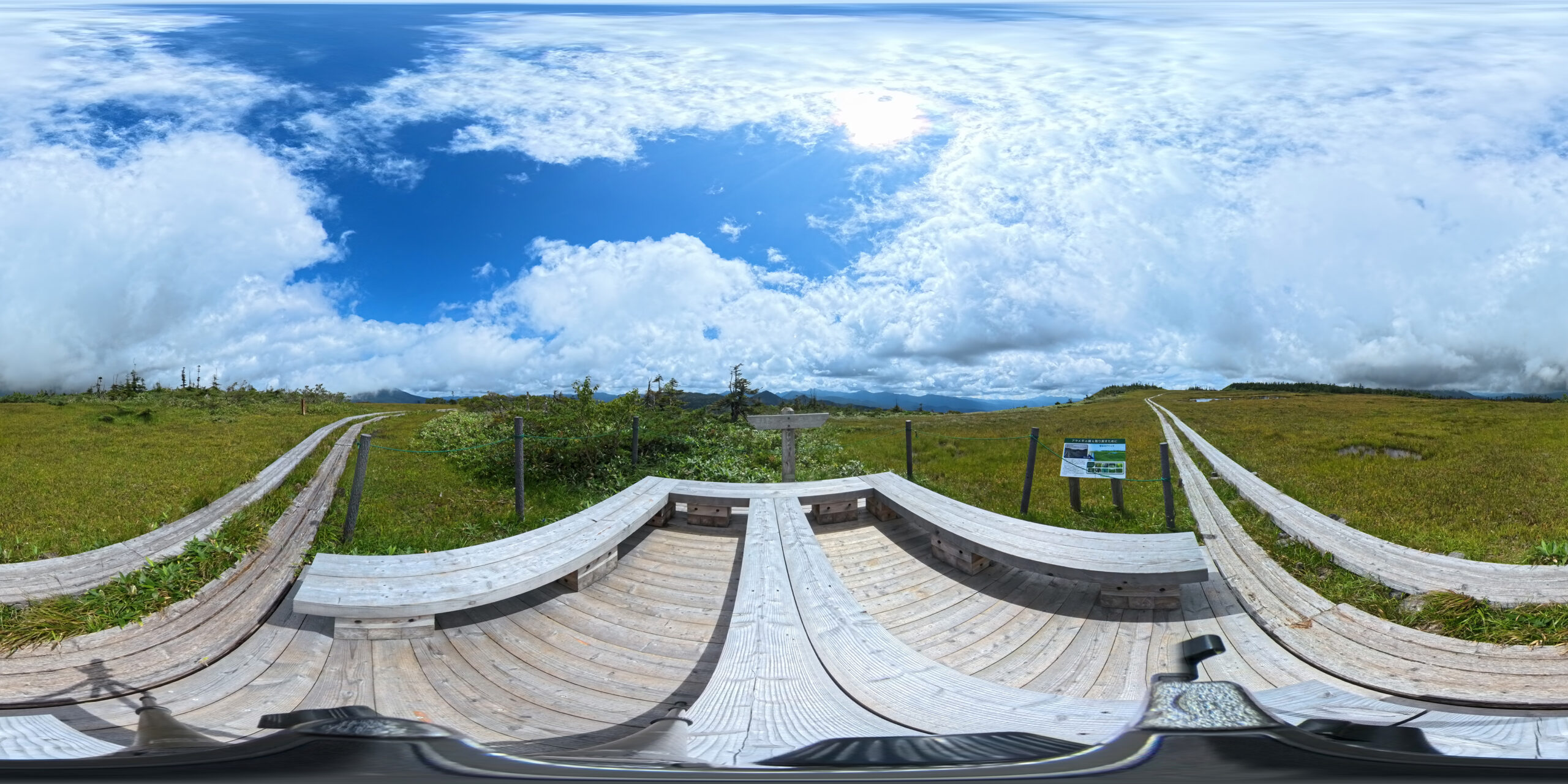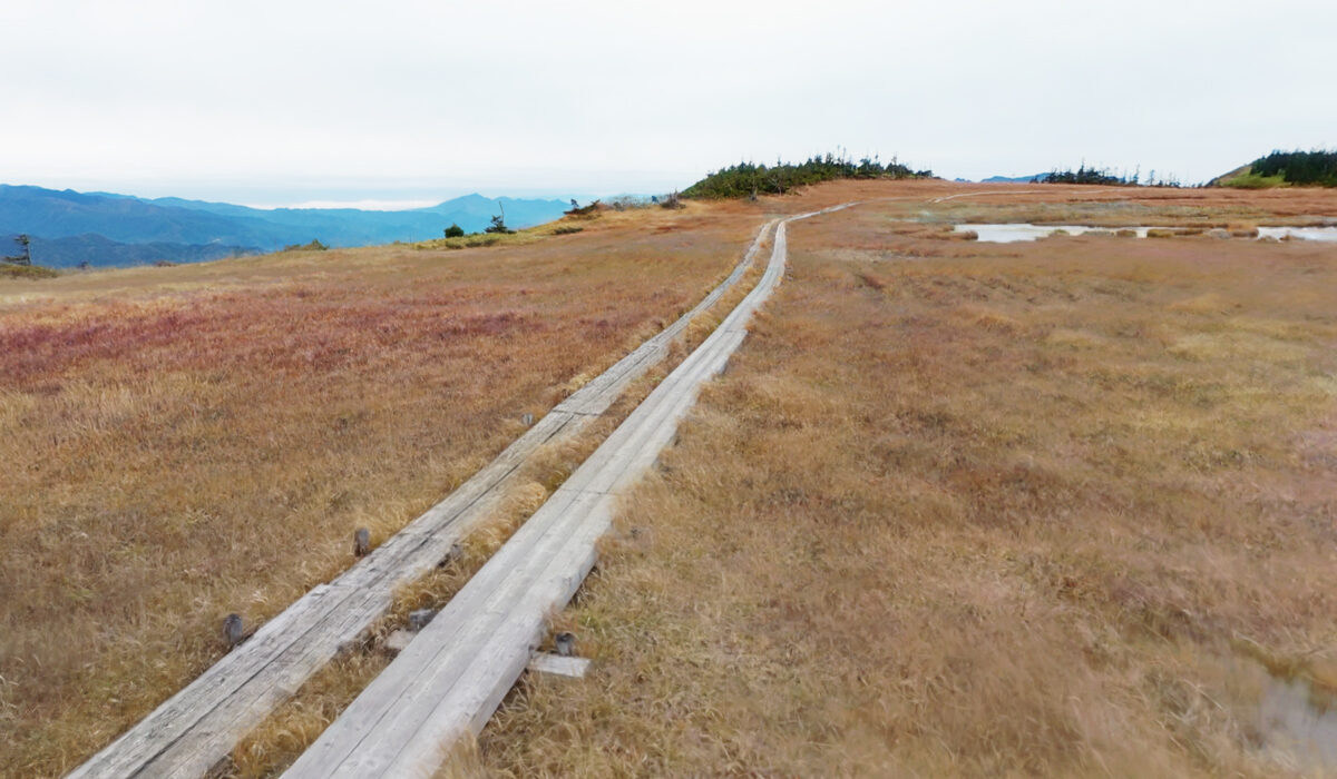 特に晴れた日には、湿原に点在する池塘に青空と雲が映り込み、まるで天空に浮かぶ鏡のような風景が広がります。